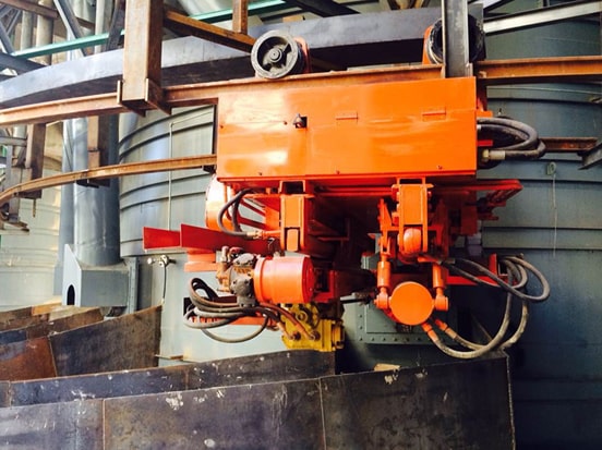 懸掛式開堵眼機安裝現(xiàn)場,國內(nèi)首創(chuàng)的軌道式全液壓開堵眼機,非常適合16500-33000kva中大小型礦熱電爐使用。...